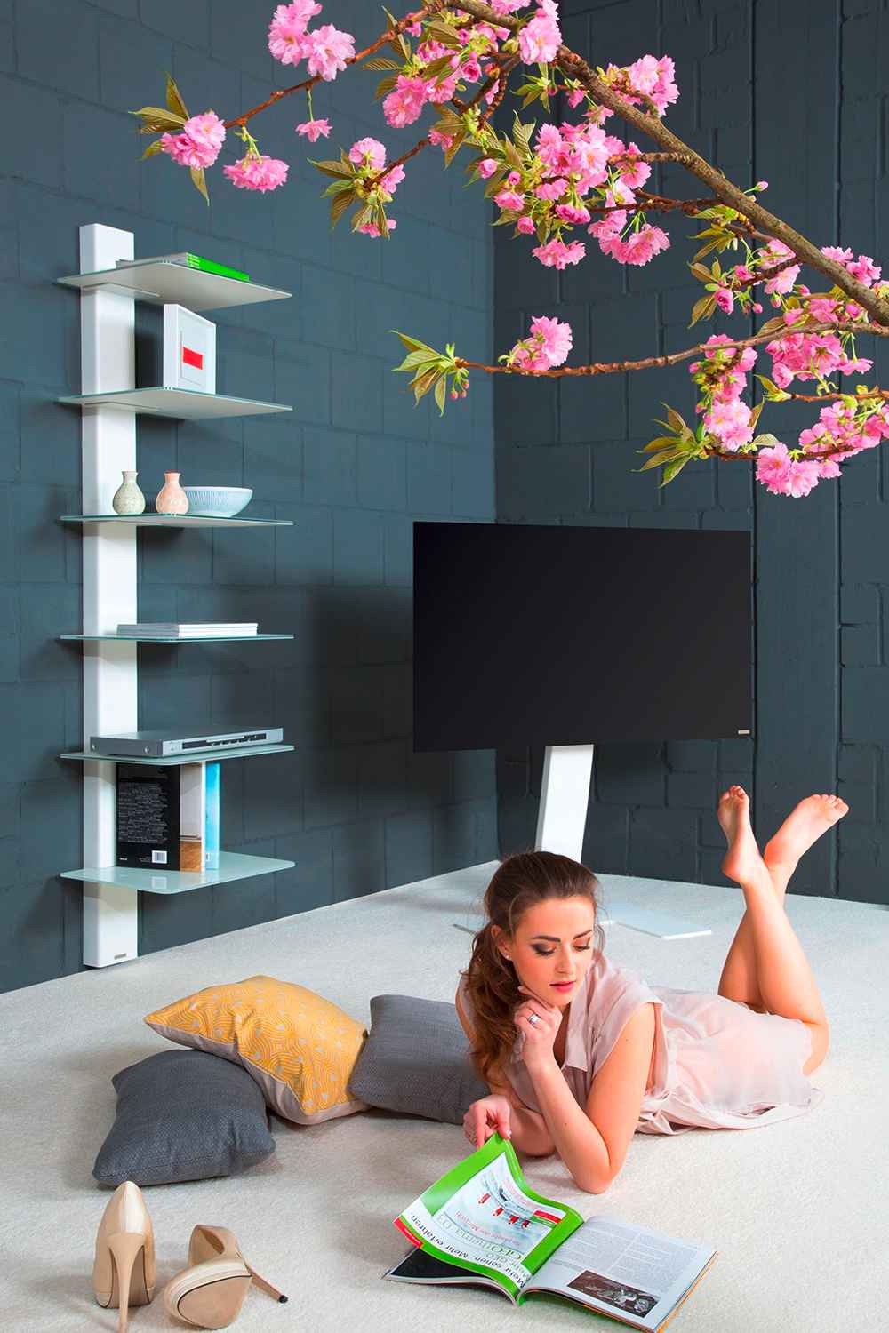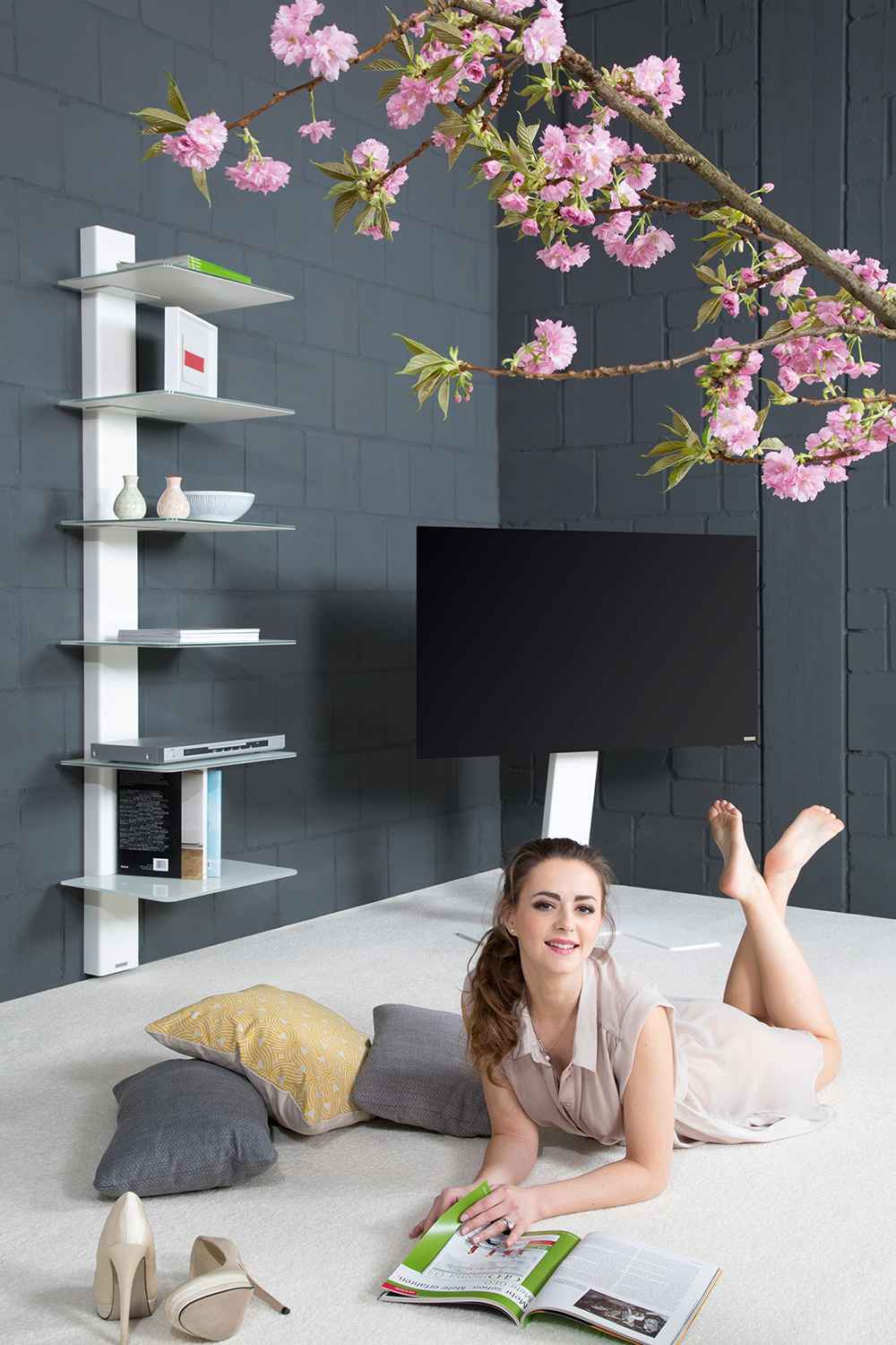 Die asymmetrische Anordnung der Regalplatten sowie deren unterseitige Lackierung werden dieses Regal zum Highlight in Ihrem Wohnraum machen.